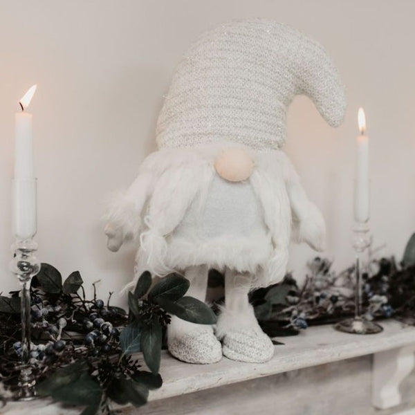 Festive white sprung gonk. The perfect seasonal character! Mr Claus also available. Measures H 56cm W 28cm D 18cm